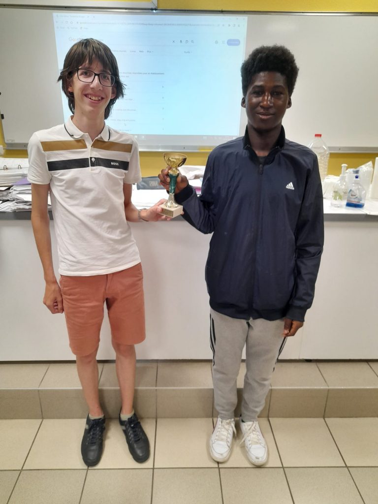 Cette année le vainqueur du tournoi d’échec est Noah.