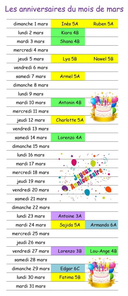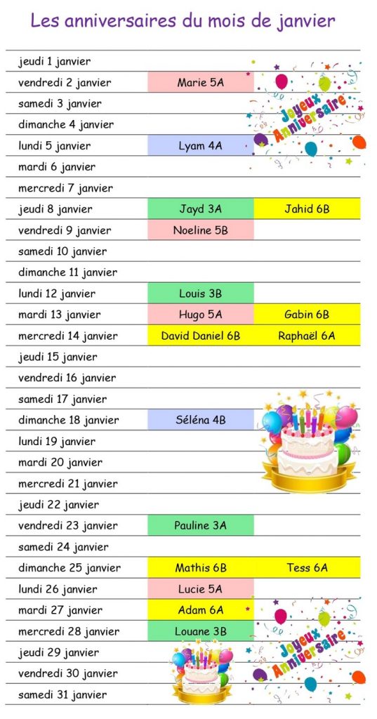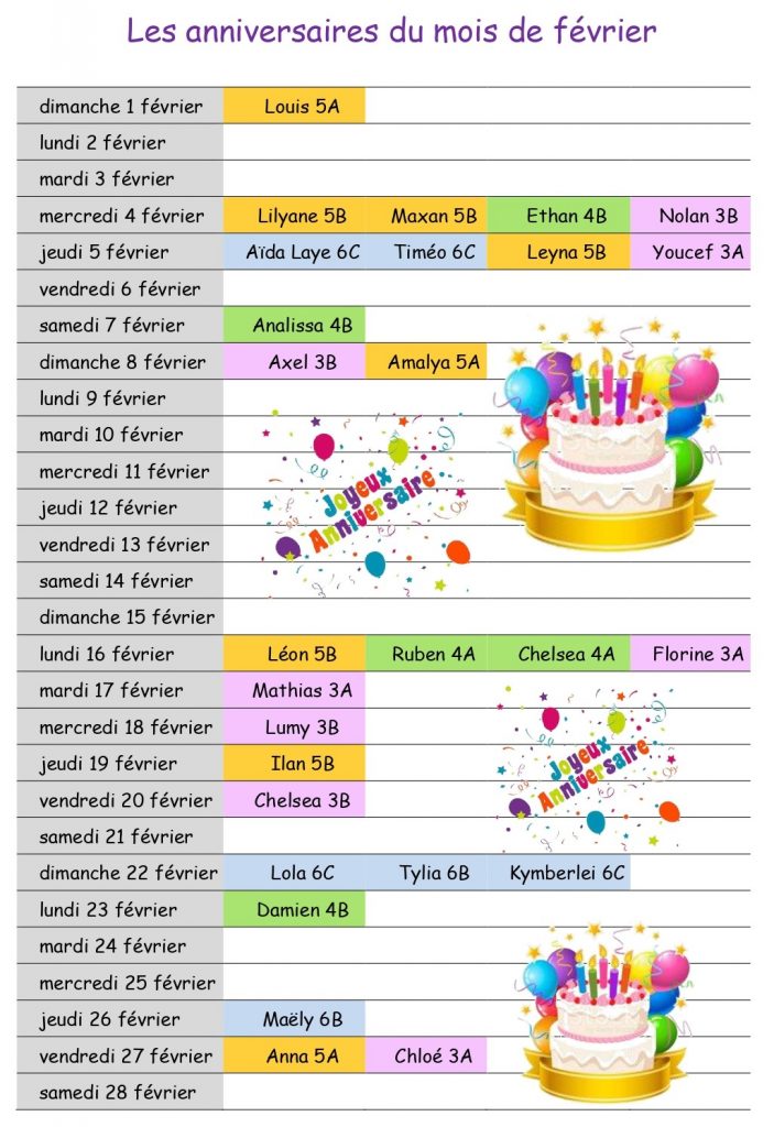 Les anniversaires du mois