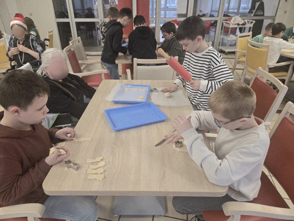 Les CM2 ont rendu visite à leurs aînés. Avec eux, ils ont confectionné des petites décorations de Noël en pâte à sel. La semaine prochaine, l’atelier sera consacré à la mise en peinture.