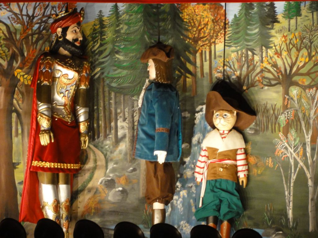 Voici quelques images du spectacle “le chat botté” (les marionnettes sont parfois impressionnantes par leur taille : 1 m !) :