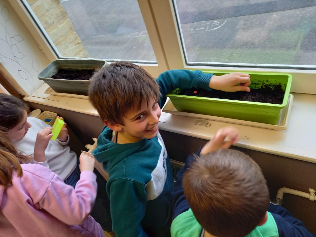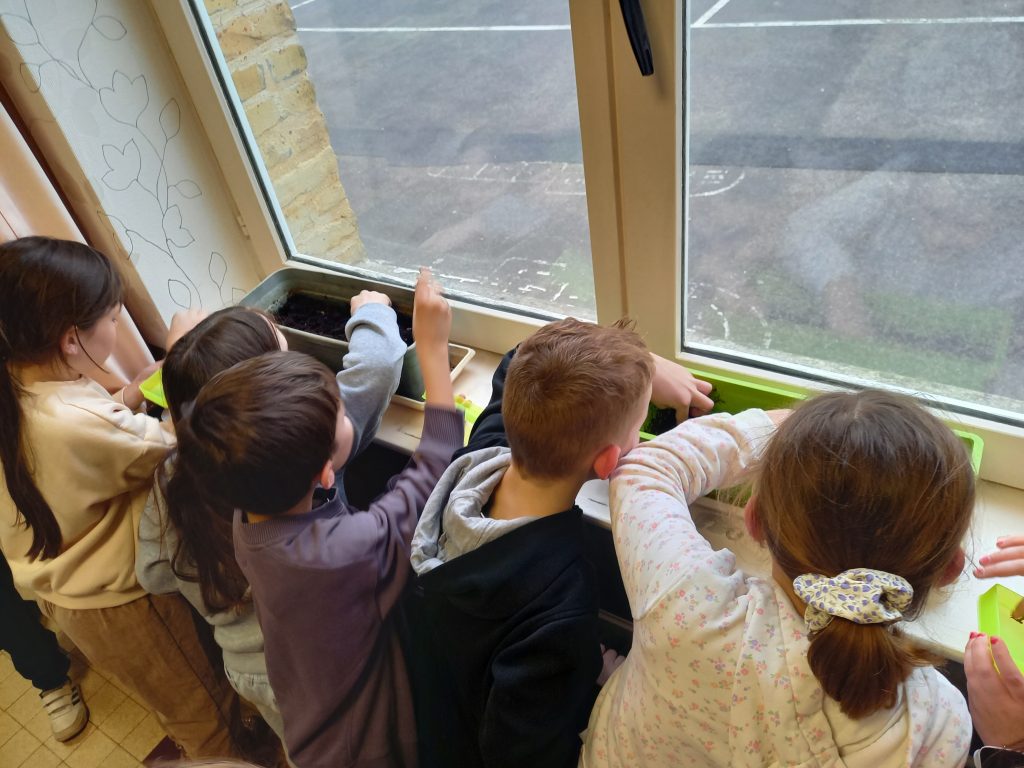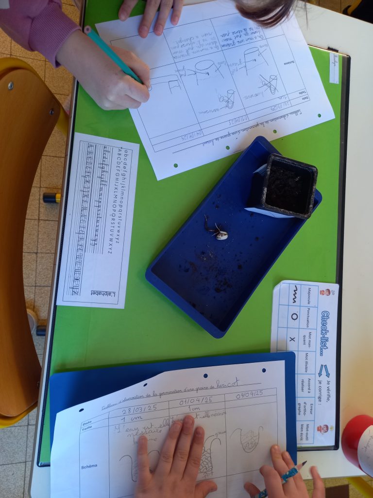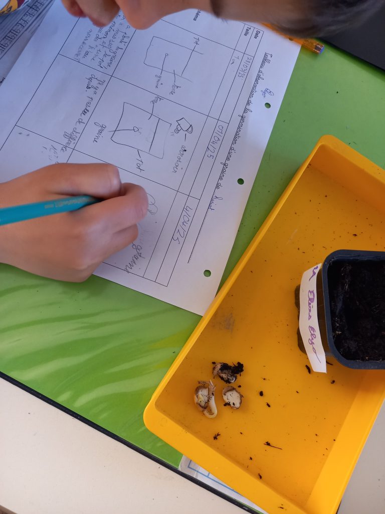 Les élèves de CE1/CE2 se sont penchés sur la question des conditions de germination d’une graine …