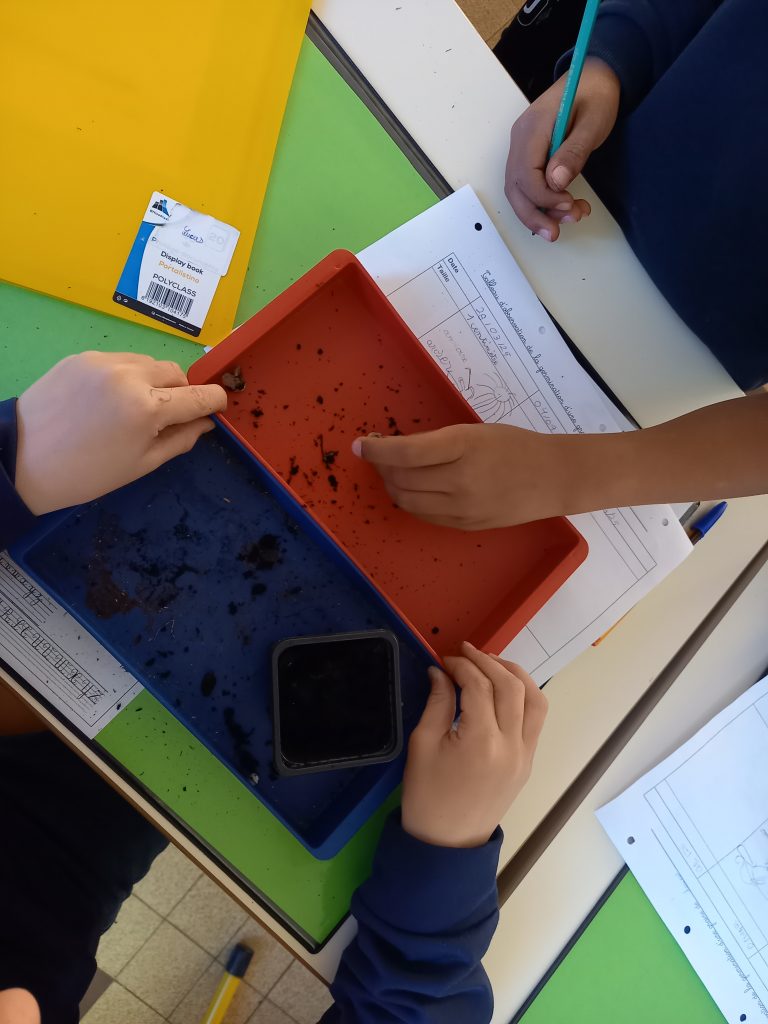 Après une semaine d’expériences et d’observations, nous avons déterré les graines pour constater lesquelles avaient germé. Surprise pour certains, déception pour d’autres … C’est le moment de compléter nos schémas expérimentaux !