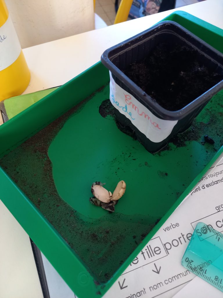 Chaque élève est parti en vacances avec une graine de haricot, à tenter de faire germer, ou non, pour affirmer nos conclusions !