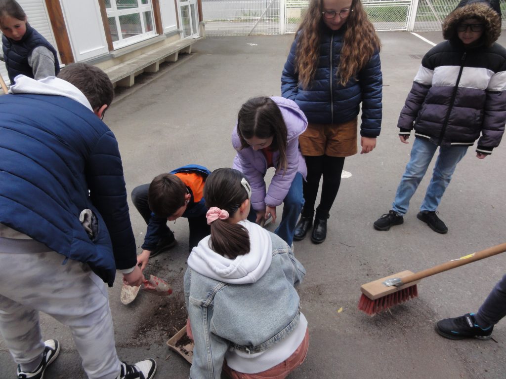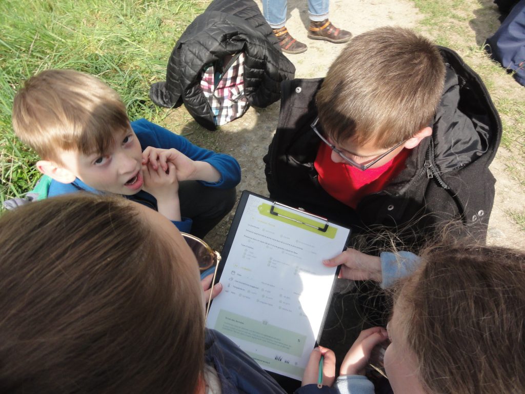 On s’inscrit ensuite aux sciences participatives du programme SPIPOLL (action menée en partenariat avec le Muséum d’Histoire Naturelle) : on va surveiller une plante durant 20 minutes et déterminer combien et quels insectes viennent la polliniser.
