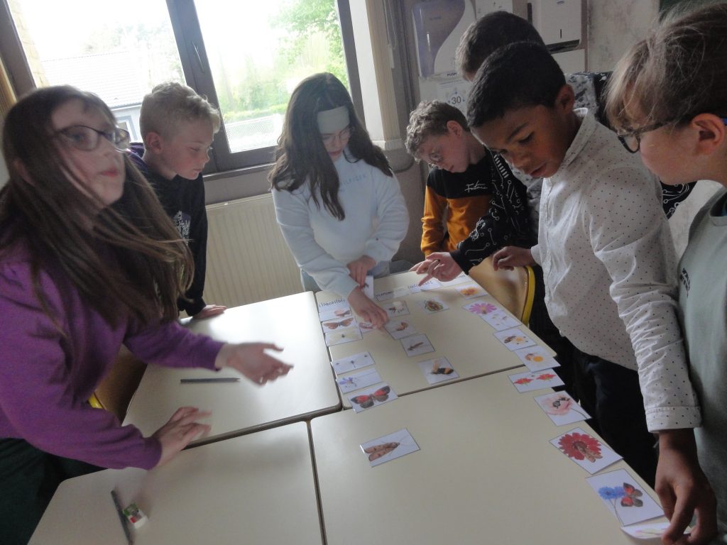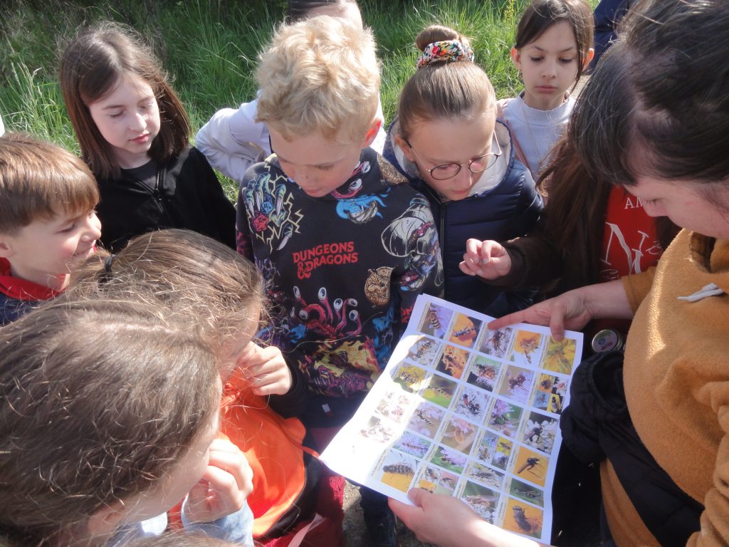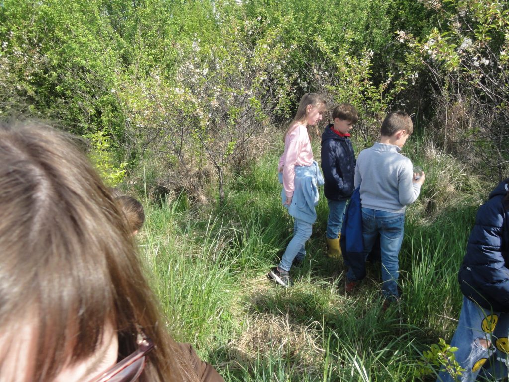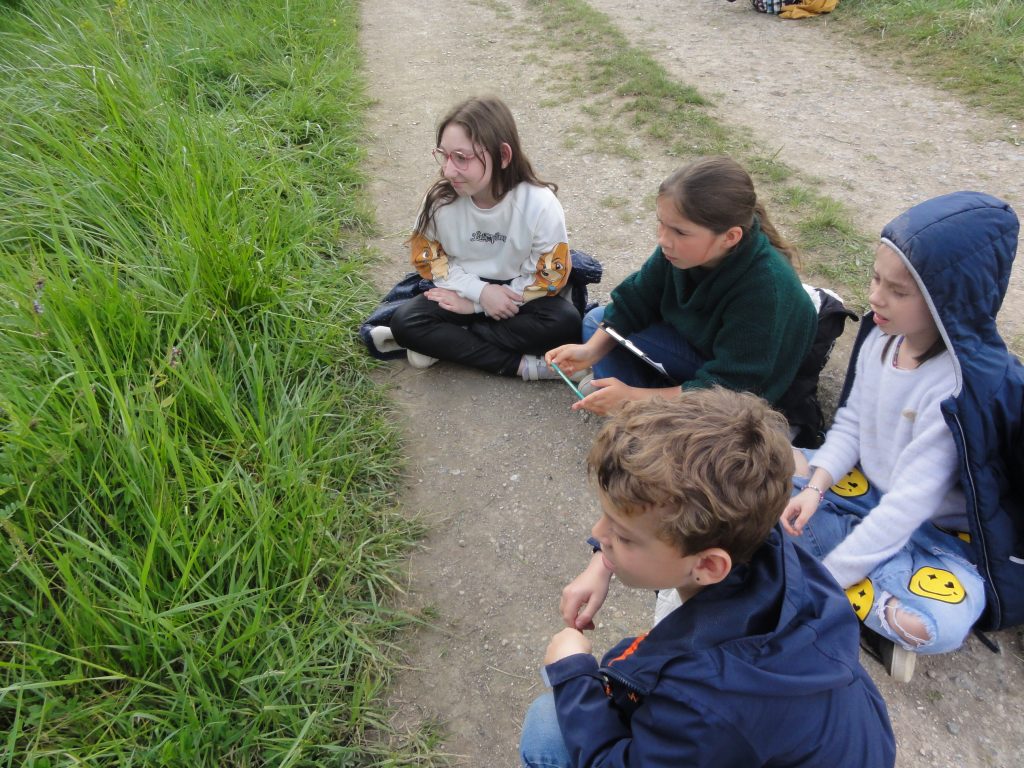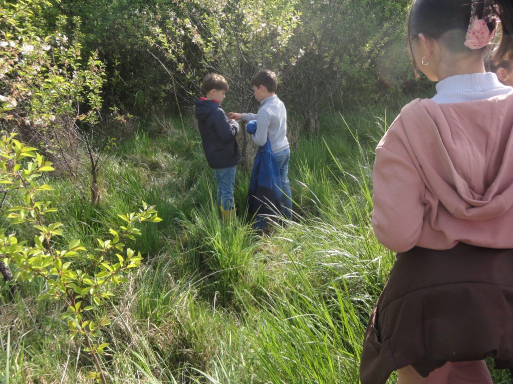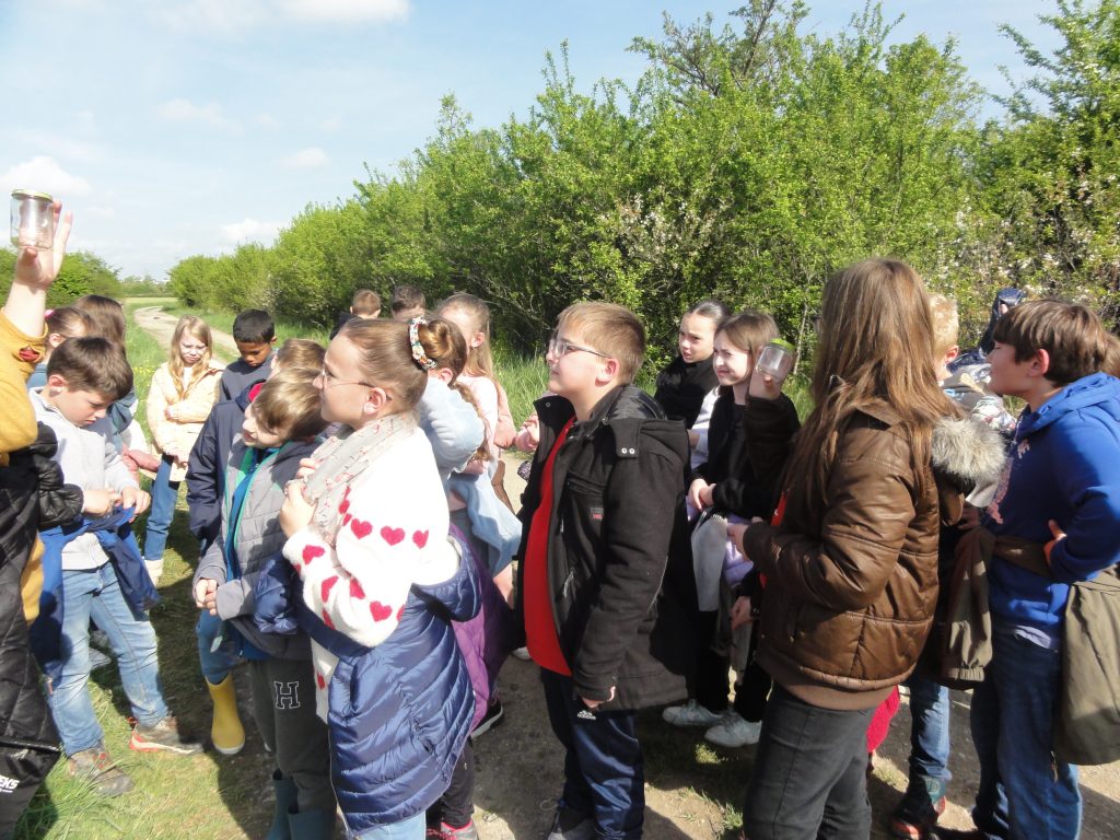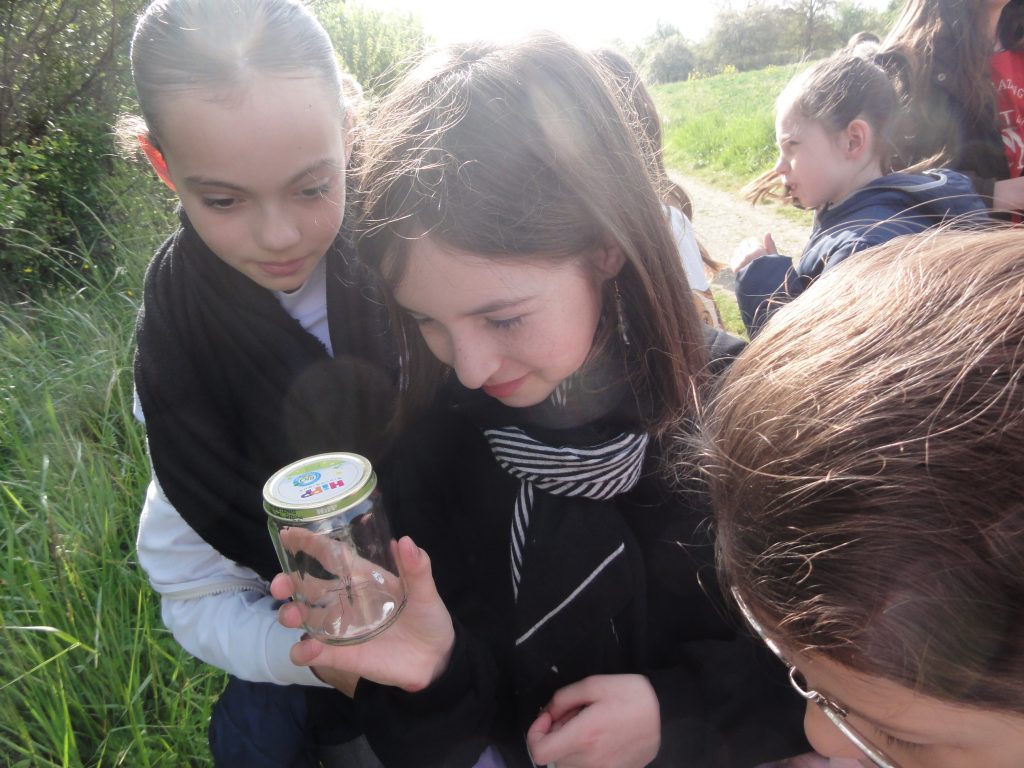 Les élèves sont partis ensuite “à la chasse” aux insectes avec filets “à papillons” et bocaux pour recueillir les spécimens (on apprendra alors les noms des 4 familles de pollinisateurs : les lépidoptères, coléoptères, hyménoptères et diptères).