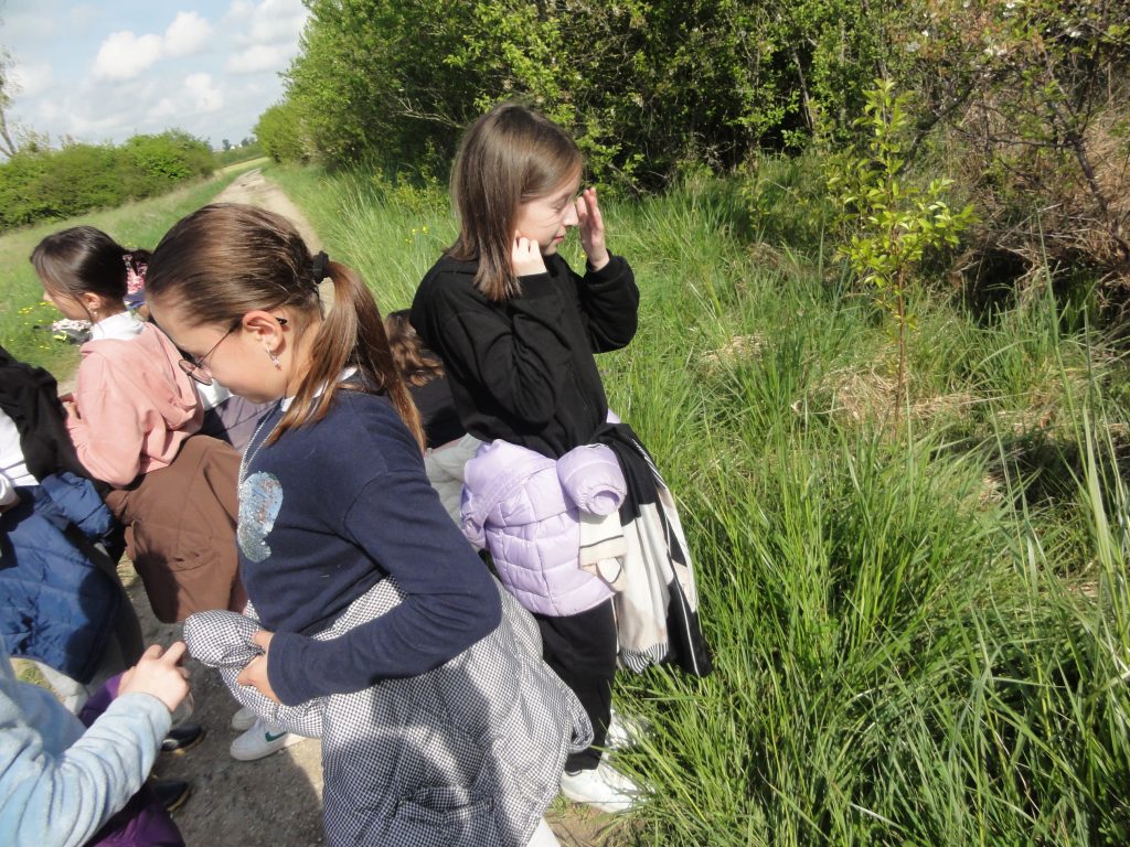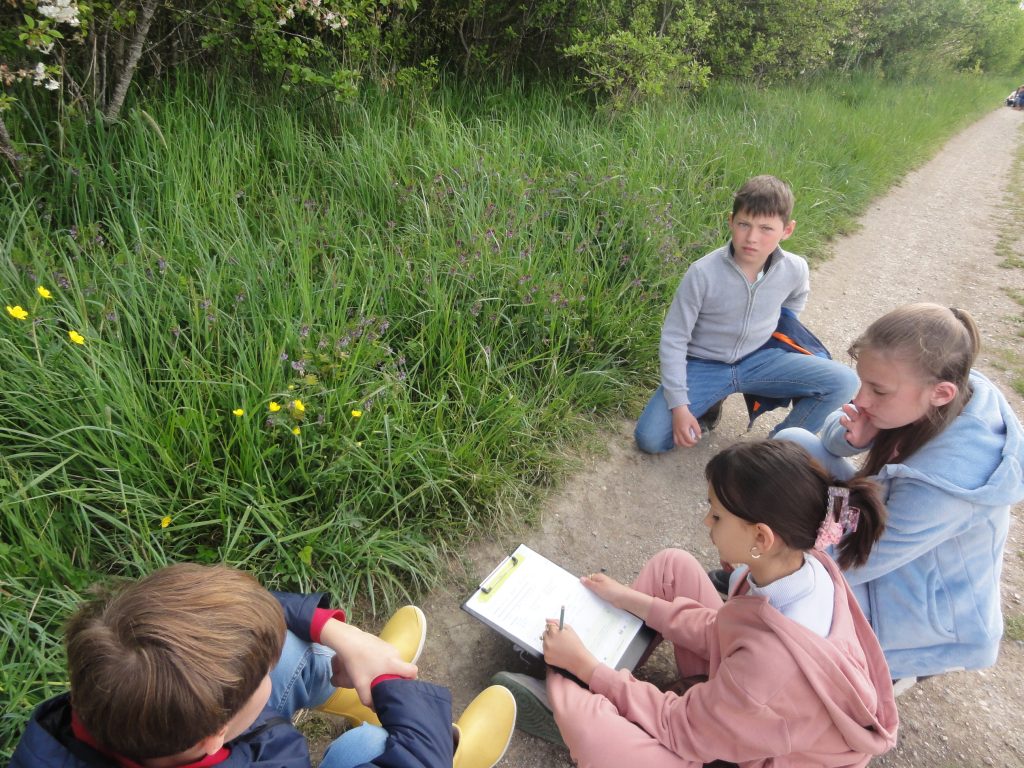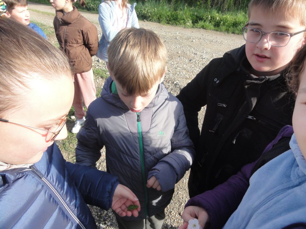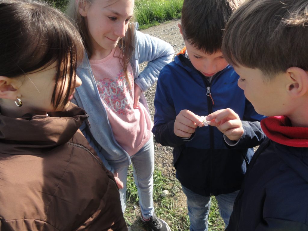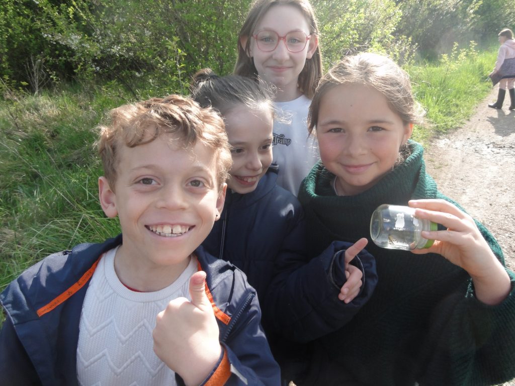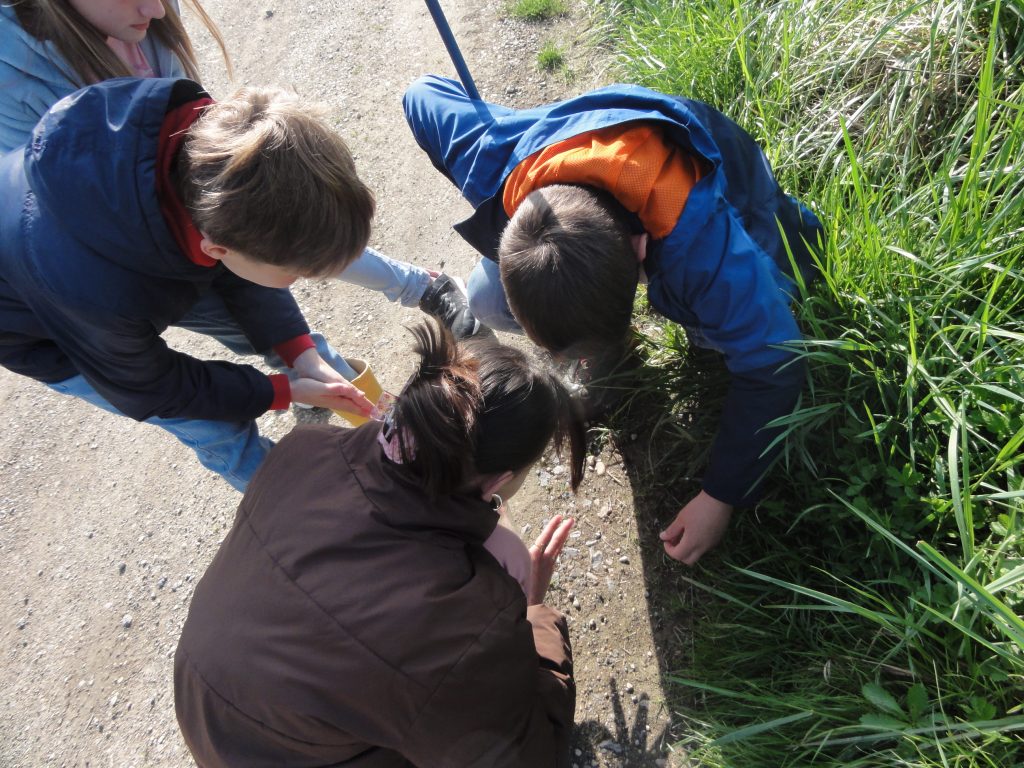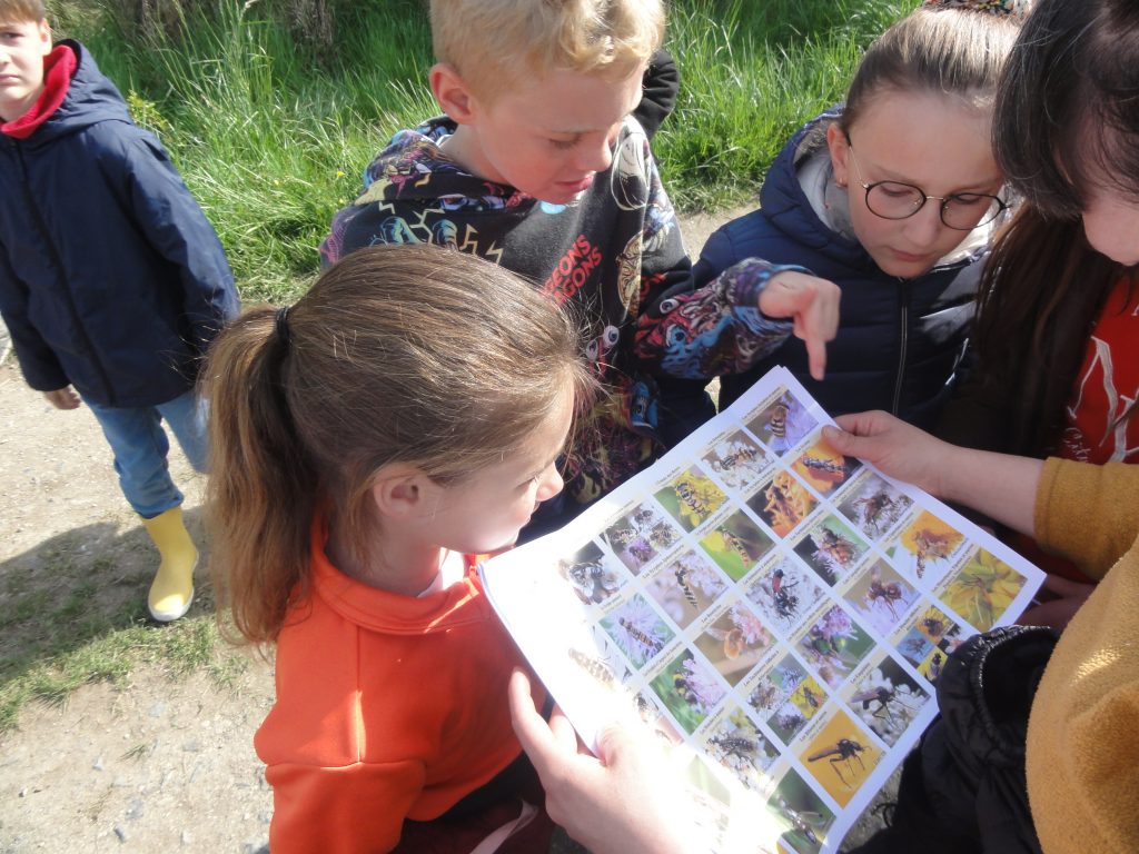Les élèves sont partis ensuite “à la chasse” aux insectes avec filets “à papillons” et bocaux pour recueillir les spécimens (on apprendra alors les noms des 4 familles de pollinisateurs : les lépidoptères, coléoptères, hyménoptères et diptères).