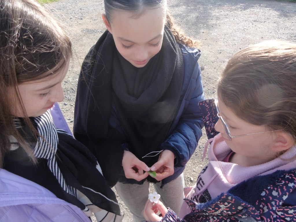 On a bien observé les premières fleurs rencontrées sur le chemin : ce sont celles que nos insectes vont polliniser : on apprend le nom des parties reproductrices de la plante.