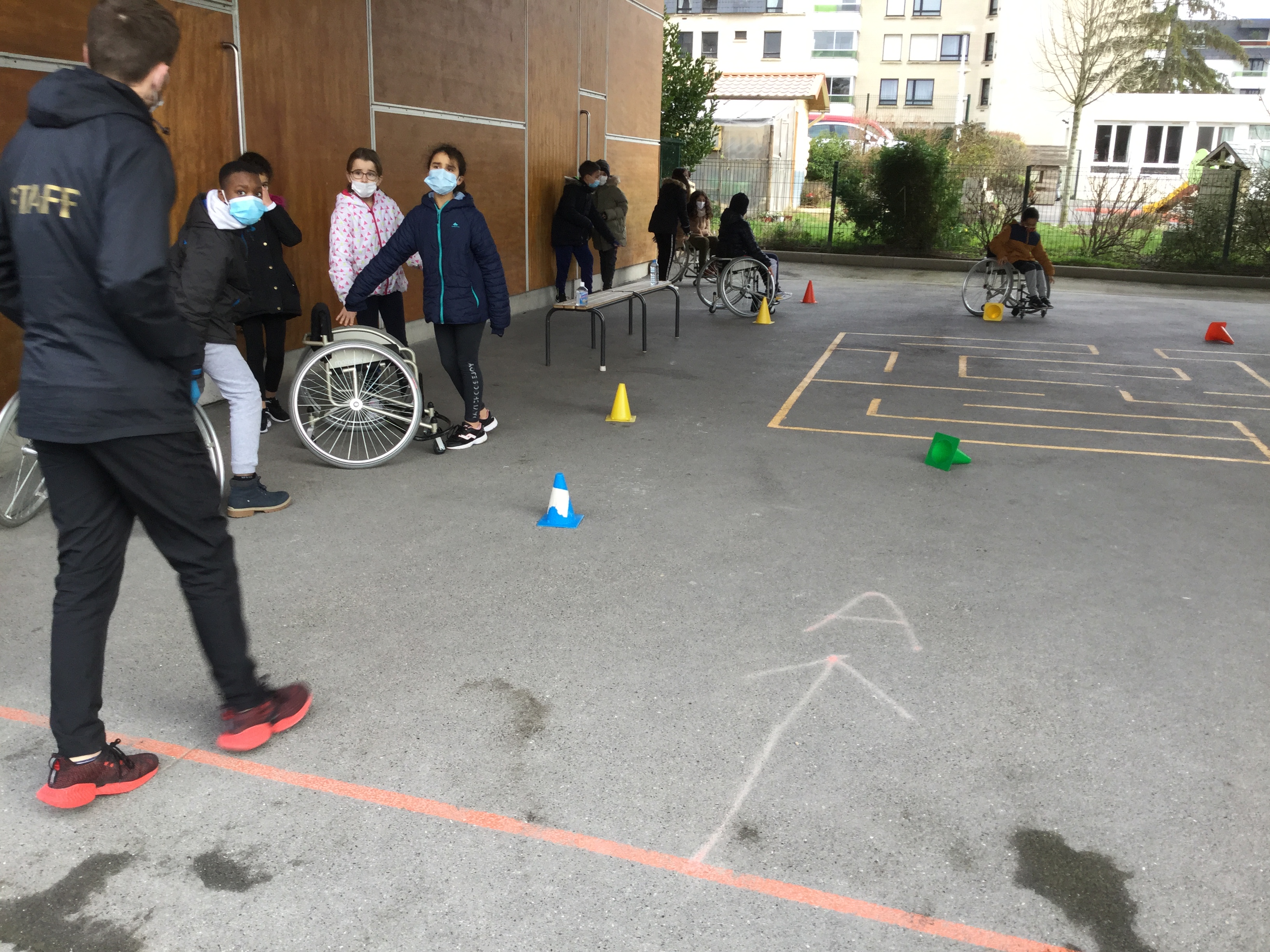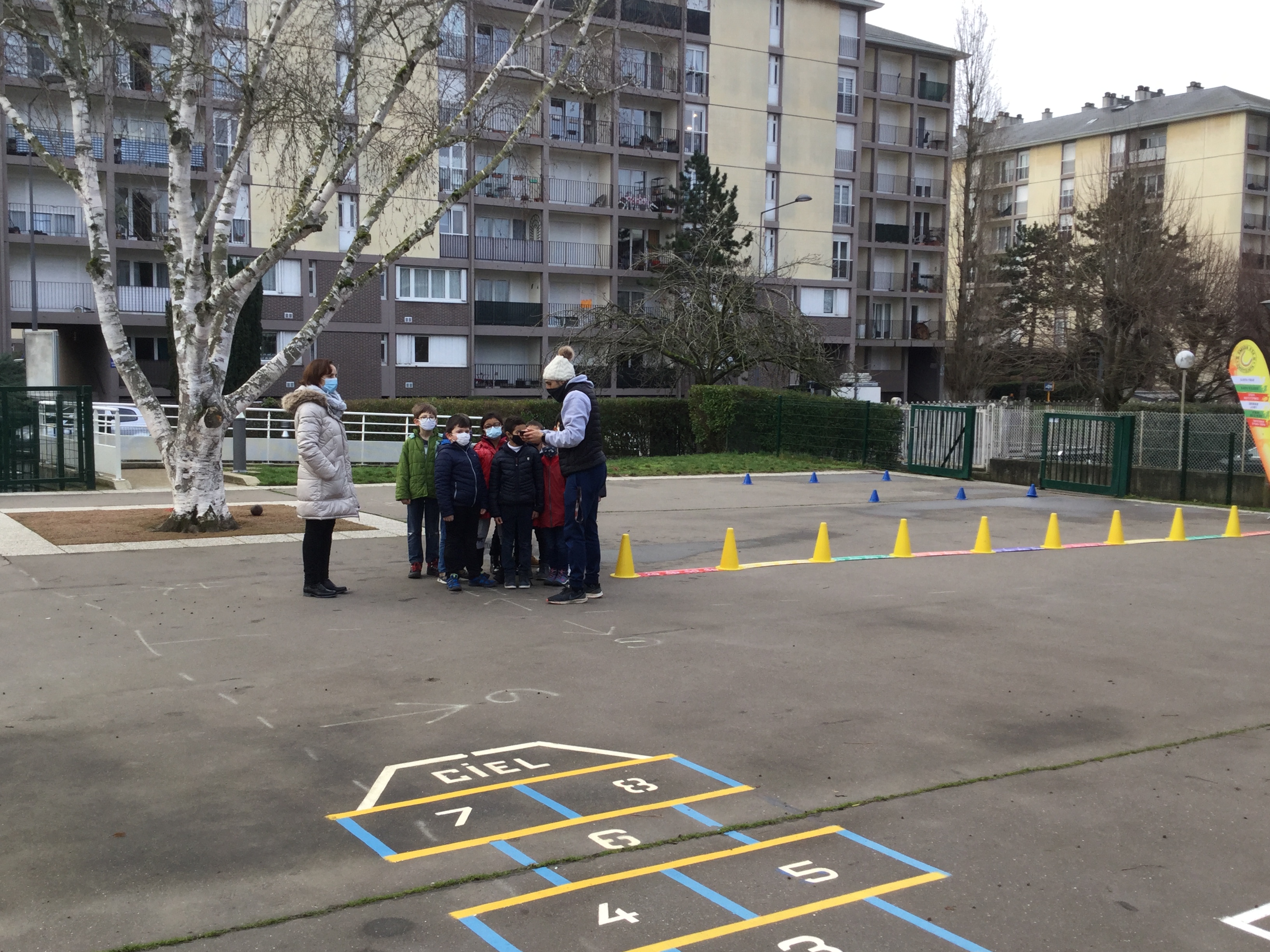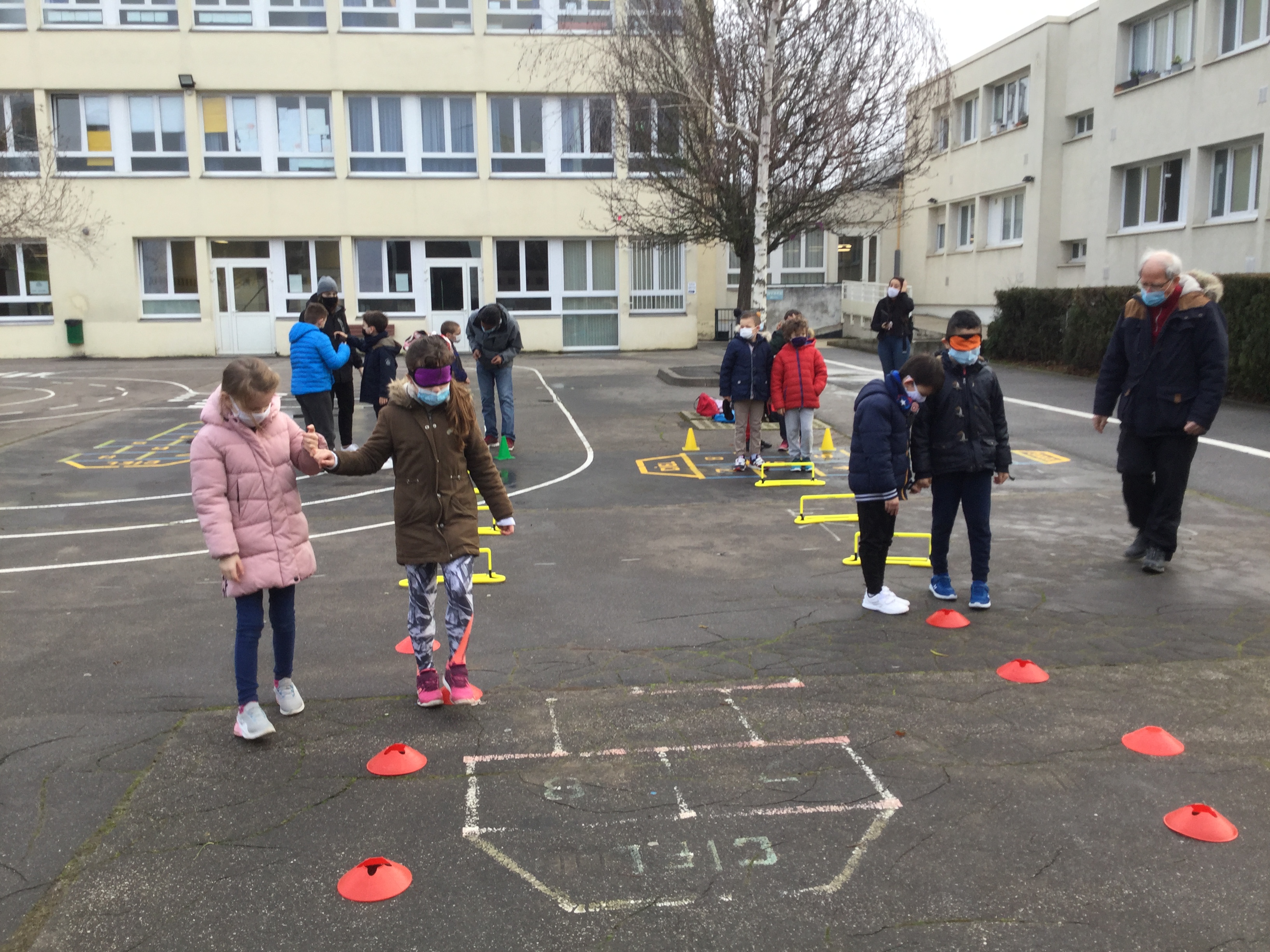 Ce jeudi 4 février, les classes de CP/CE1, CE1 , CE2 et CE2/CM1 ont participé à des ateliers organisés par l’USEP, l’EFSRA, des étudiants de L2 Staps, le Comité Olympique Départemental et le Comité Départemental Handisport dans le cadre de la Semaine Olympique et Paralympique 2021 en préparation des Jeux Olympiques 2024 de Paris.