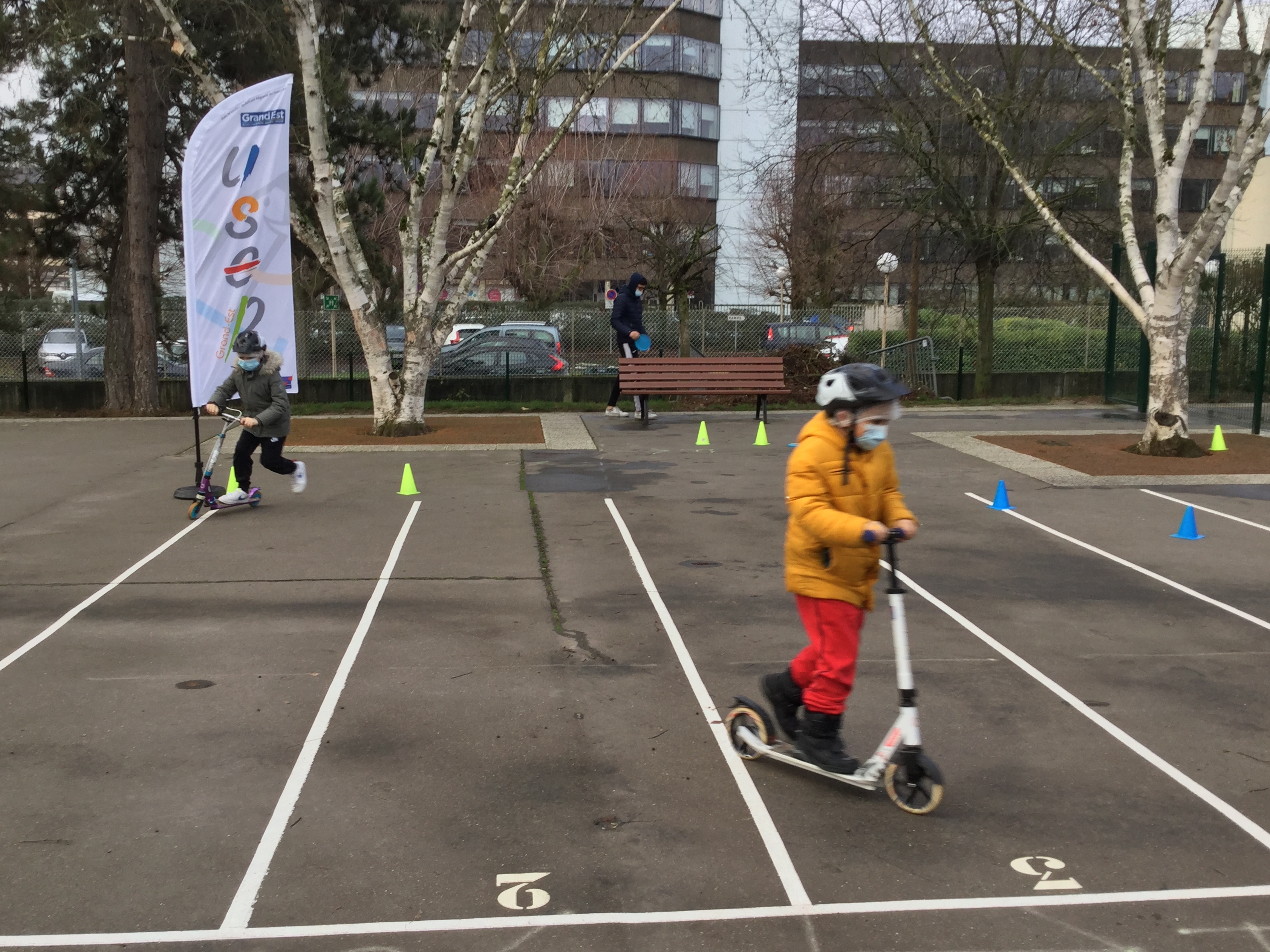 Les classes de CP/CE1 et CE1 ont participé aux 4 ateliers suivants: Parcours en Trottinette, Triple saut, Course chronométrée, Parcours à l’aveugle et parcours atelier défi patinage de vitesse.