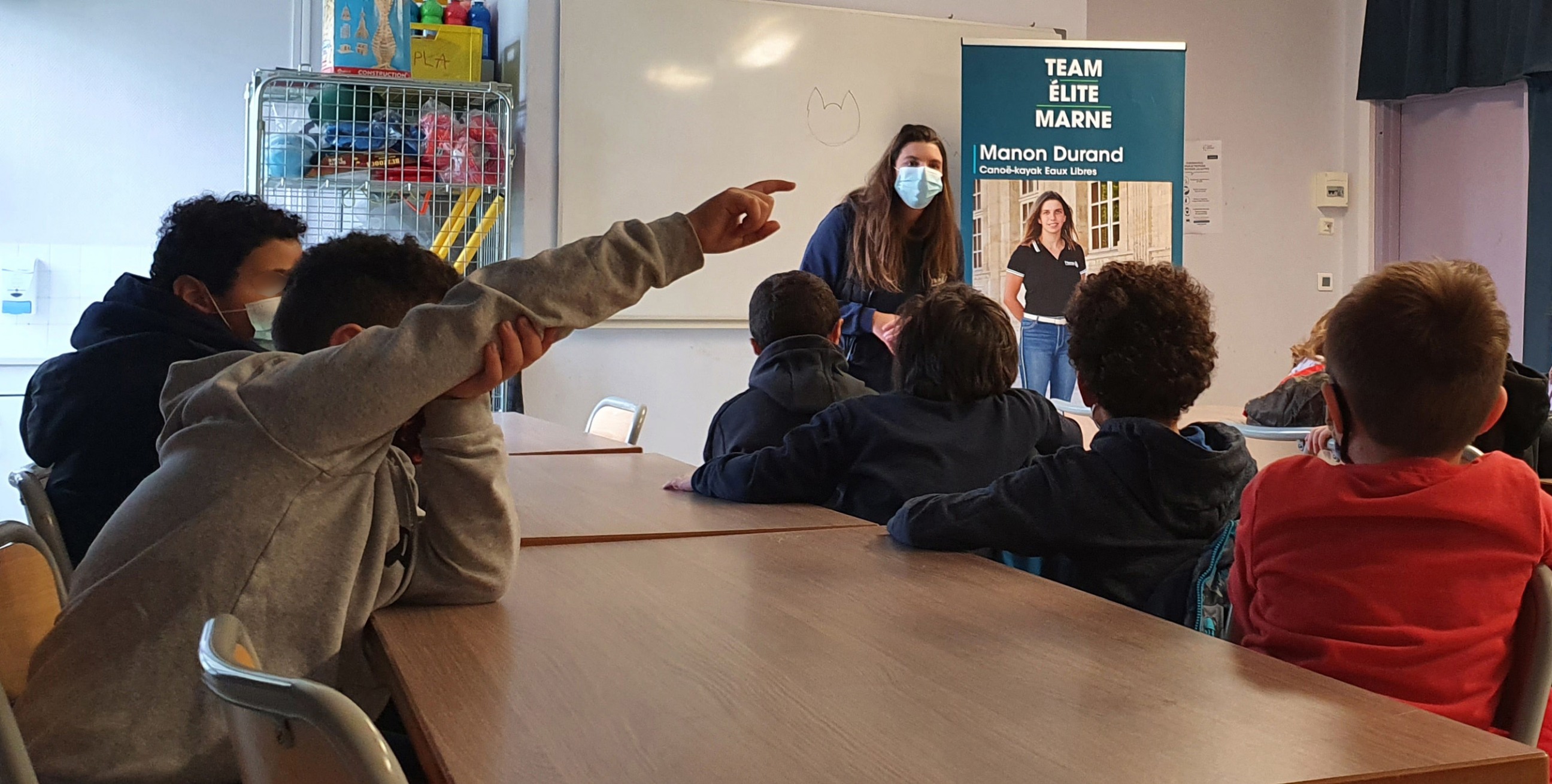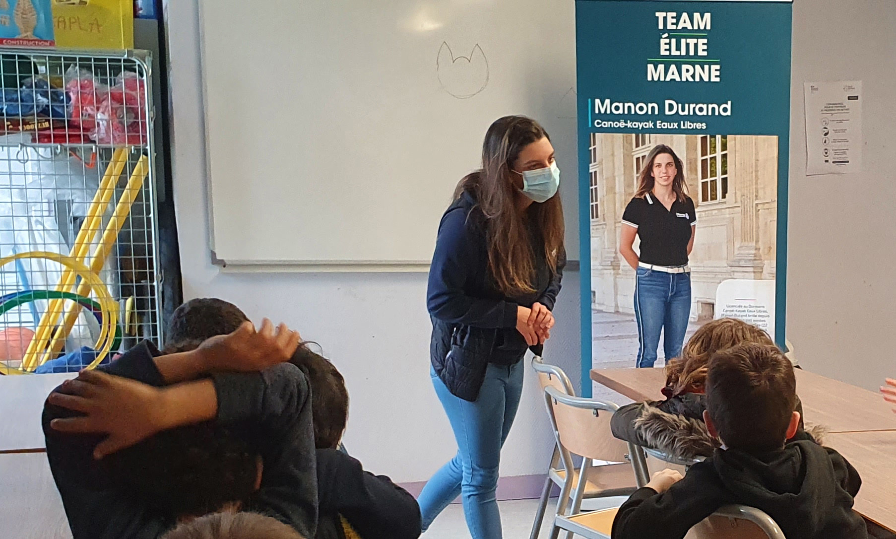 Une Athlète qui participera aux Jeux Olympiques, Manon Durand, kayakiste, est venue aussi ce jeudi matin pour répondre aux questions des CE2 et CE2/CM1.