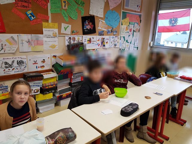 Les professeurs d’allemand, Mme GUERISSE et Mme CHARLES nous ont fait un bel accueil. Les 6ème bilangues, ainsi que les CM2 des écoles du Plateau et du Charme ont été mélangés.