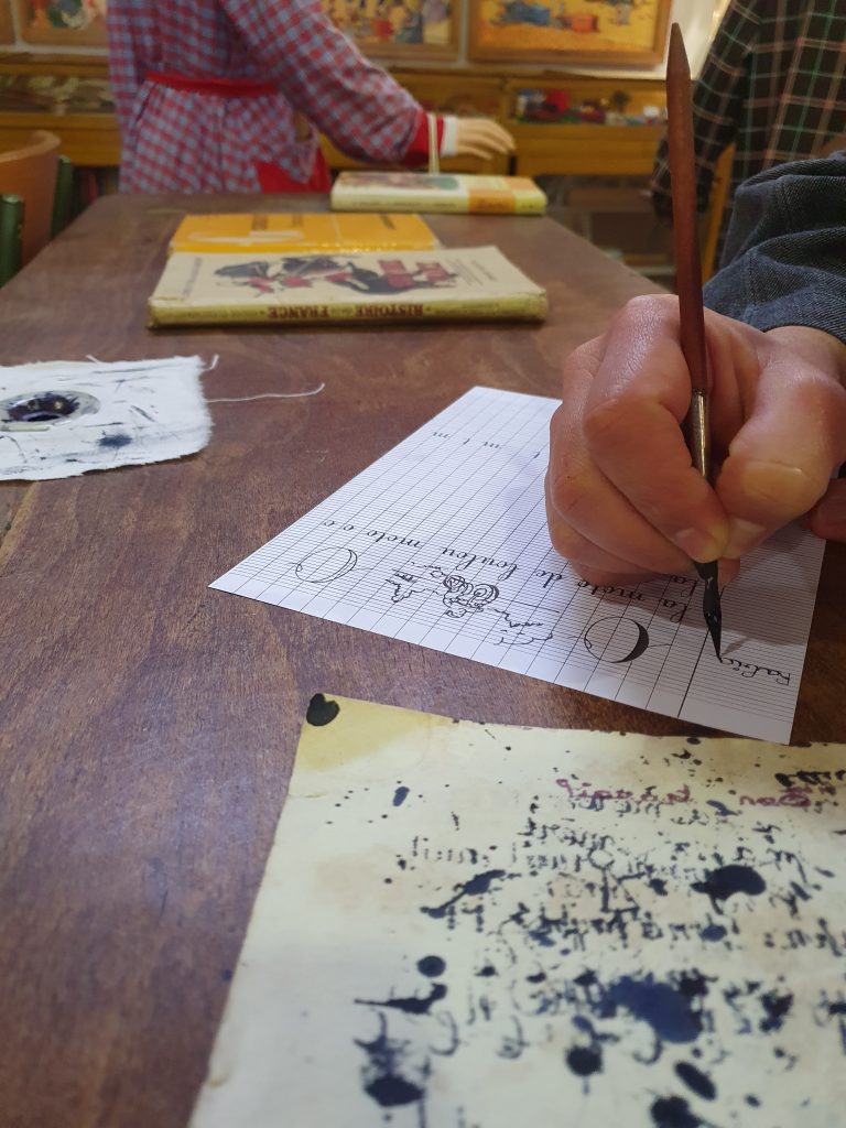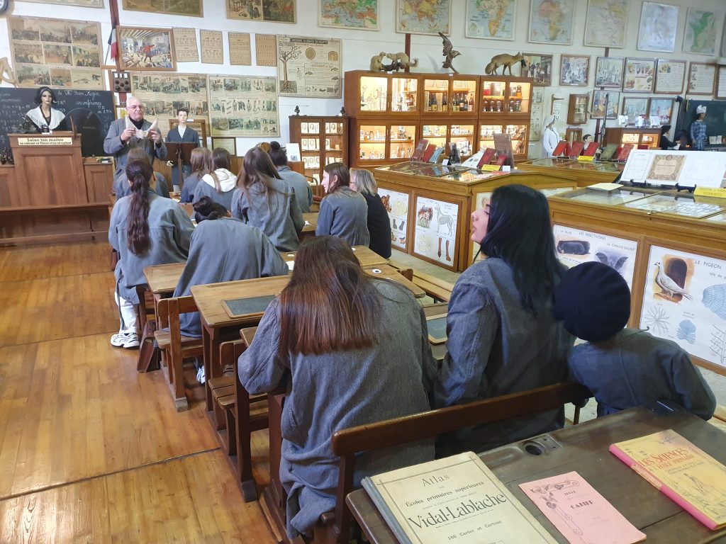 Le jeudi 13 novembre, elles ont bénéficié d’une visite guidée au musée L’École d’autrefois de Roches sur Marne. Elles ont découvert et observé différents objets anciens lié à l’école et deux reconstitutions de salle de classe, l’une s’inspirant des années 1950-1960 et l’autre du début du 20ème siècle. Elles ont pu s’immerger dans l’ambiance de l’école d’autrefois en essayant notamment les blouses comme à l’époque et en testant l’écriture à la plume et l’encrier. Exercice pour lequel elles ont reçu un “bon point”.