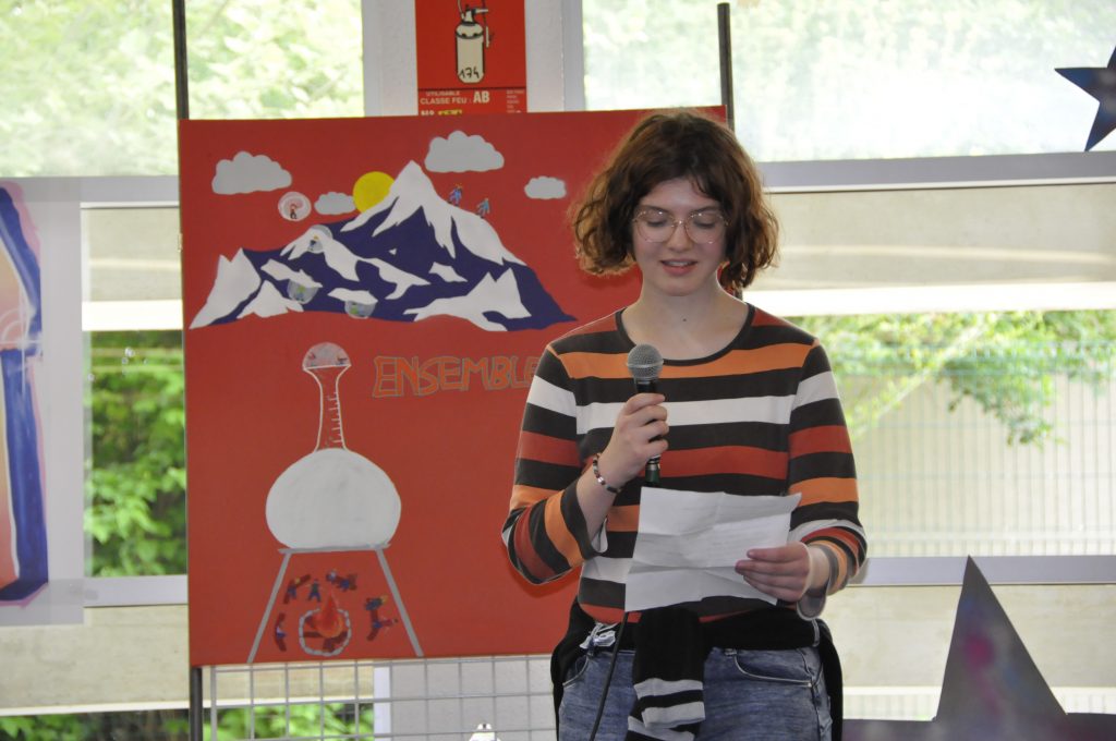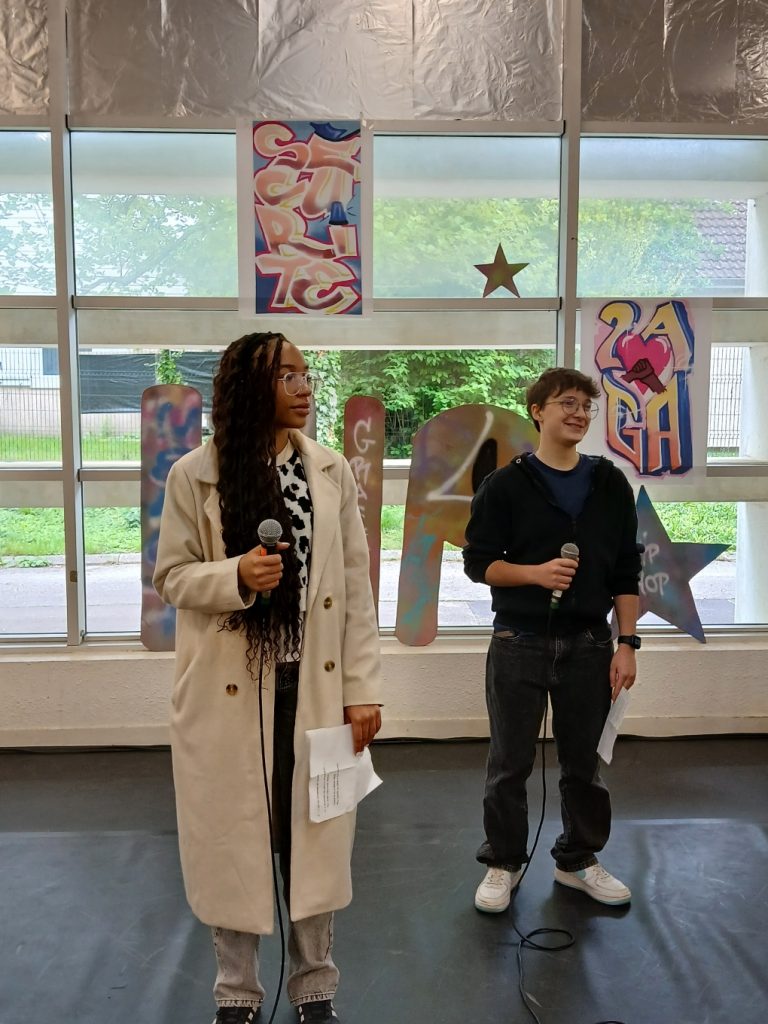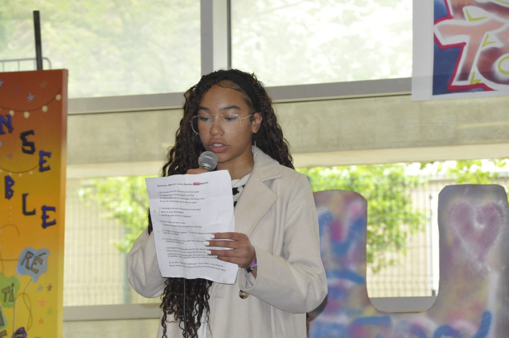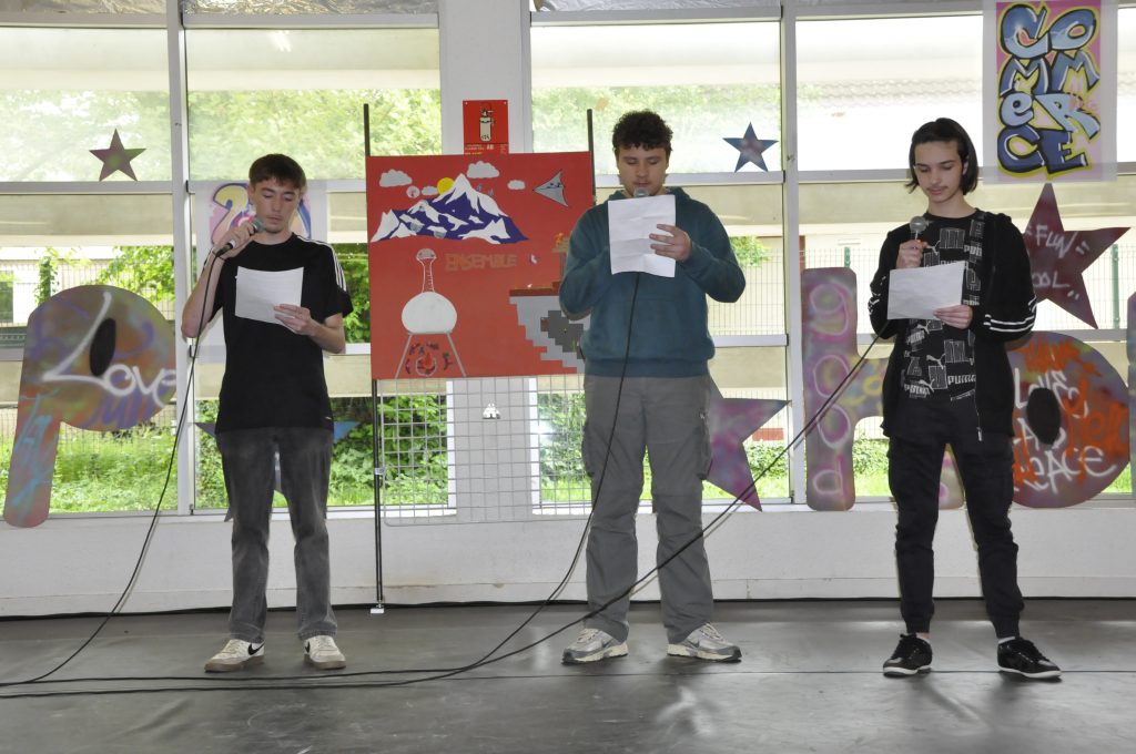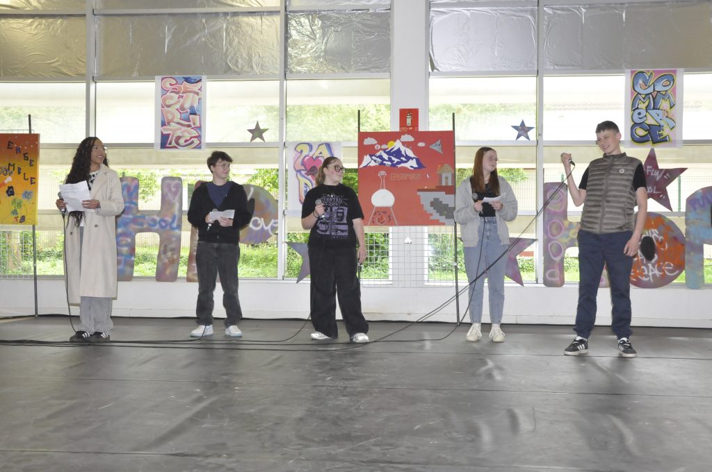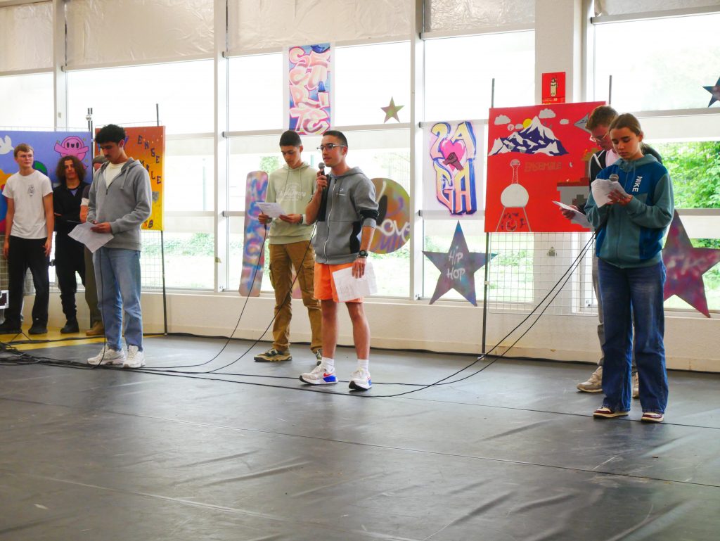 Ce vendredi, sonnait l’heure du spectacle sur le thème « Faire corps », concrétisation de ces semaines de travail pour les élèves et leurs professeures Elsa Maulion, Marion Parmentier, Camille Sirodot et Aurélia Wavelet. Aux côtés des lycéens d’Edouard Herriot et de Paul Verlaine, les élèves de Baudot ont réalisé de très belles prestations en slam et en hip-hop dans une scénographie construite à partir de l’ensemble des réalisations graffiti devant un public très enthousiaste. Les élèves ont fait preuve d’une grande implication et ont été ravis de cette belle journée de créativité et de partage.