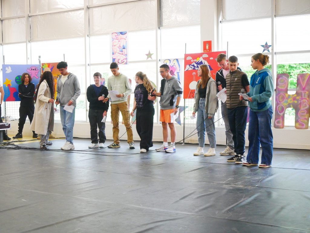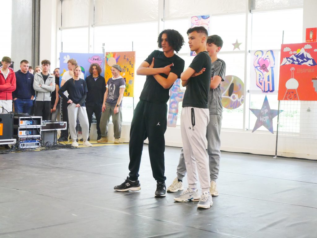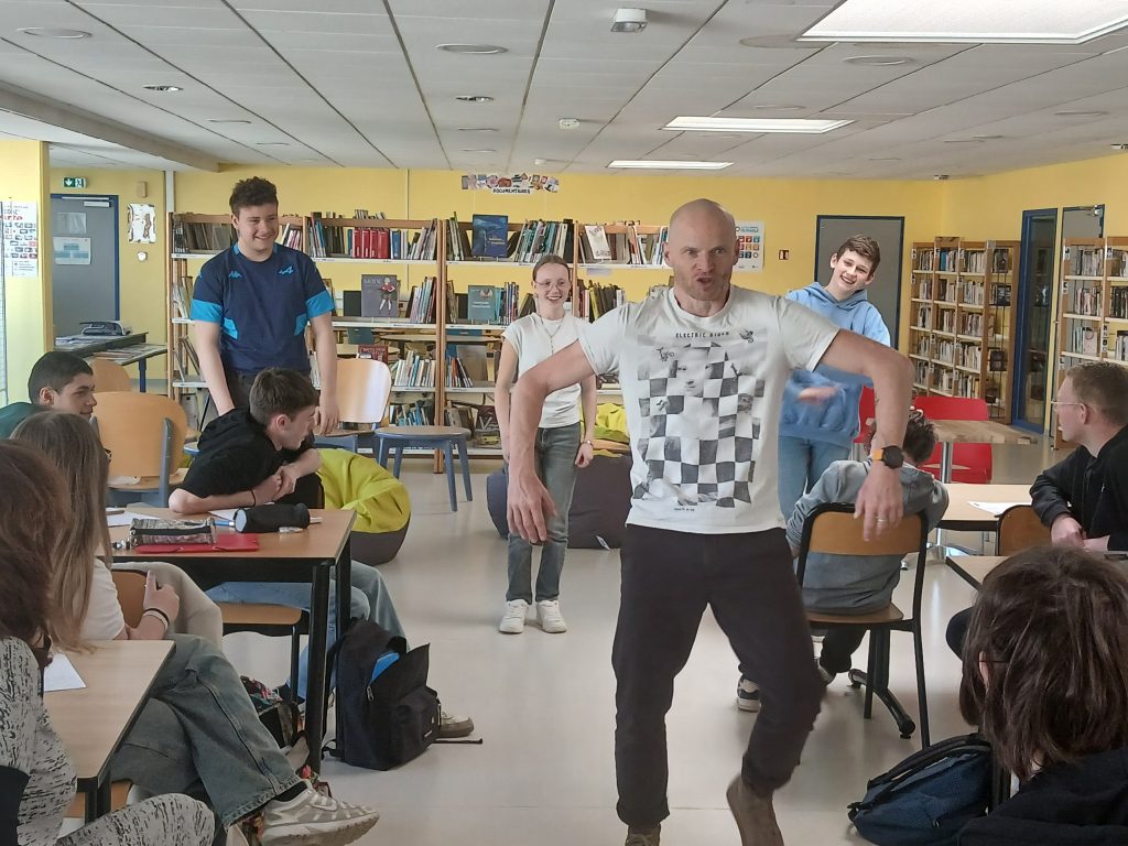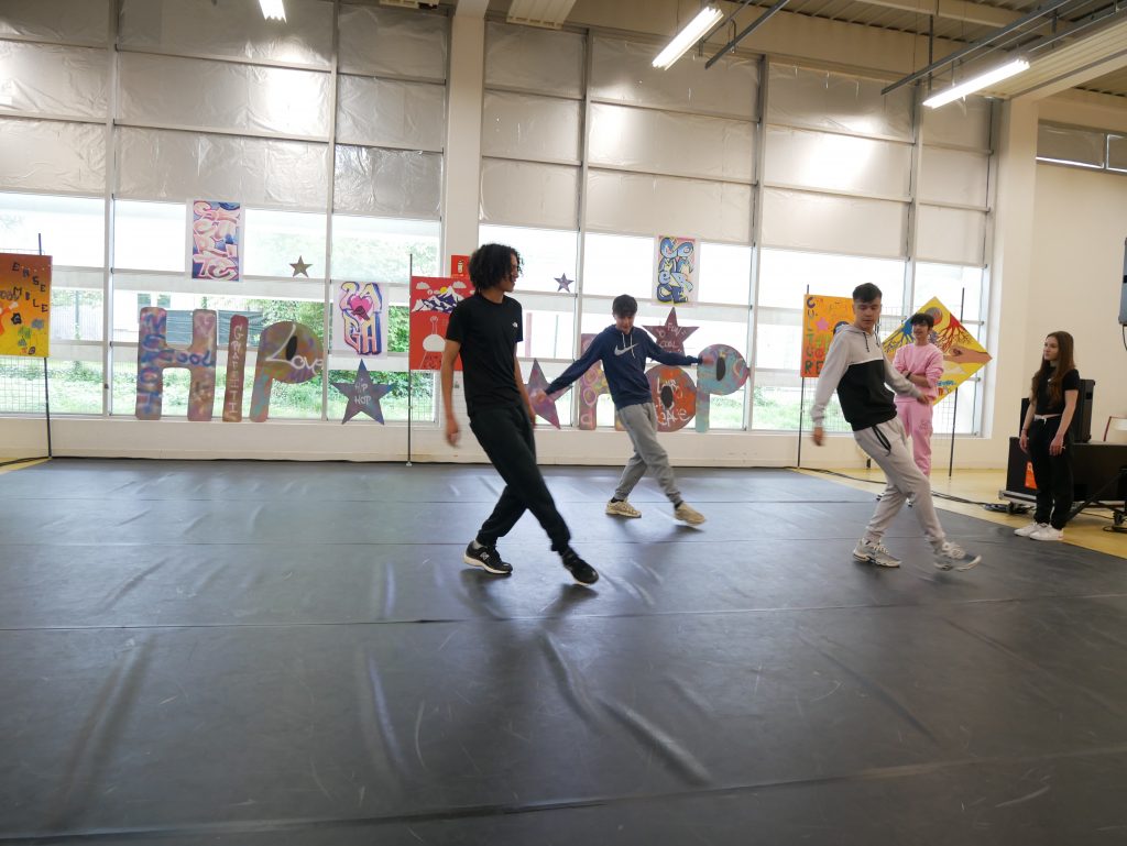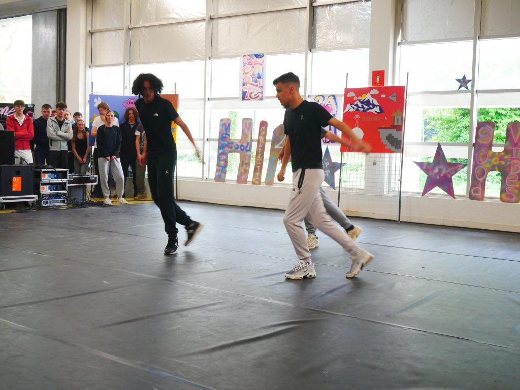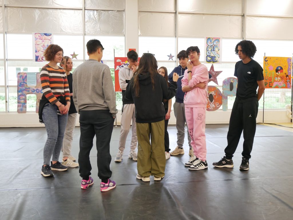 En cours d’EPS, les élèves ont été initiés à l’activité danse Hip-hop avec la danseuse Lucie Inglebert (cie Insomni’arts) pendant un cycle entier ce qui leur a permis de progressivement gagner en assurance face à un public.