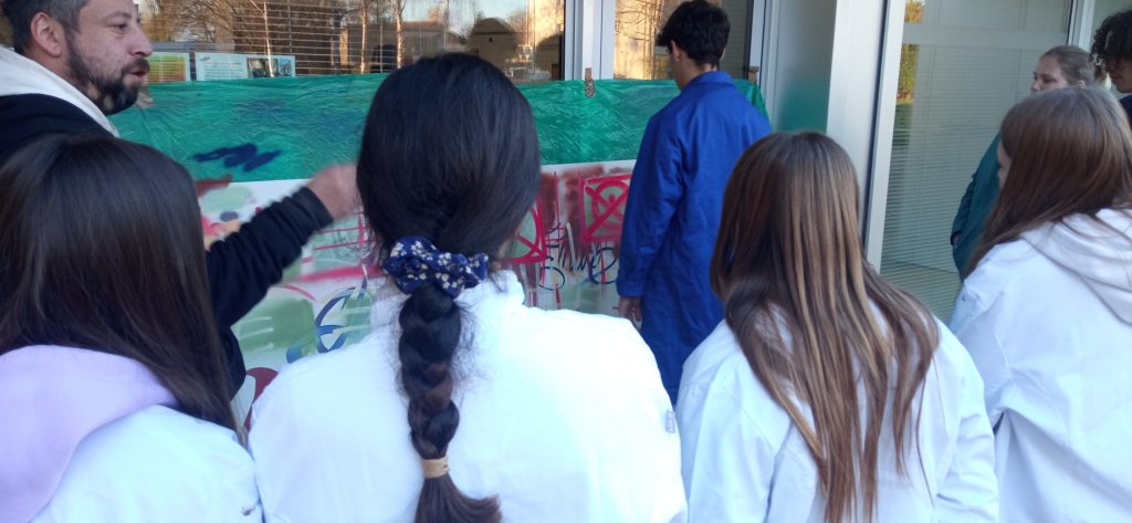 En arts-appliqués, avec les conseils du graffeur bragard Sebastien Skoros « Lordtazex », les élèves ont réalisé un triptyque représentant les filières professionnelles du lycée Emile Baudot : agent accompagnement au grand âge ; métiers de la sécurité et métiers du commerce et de la vente.