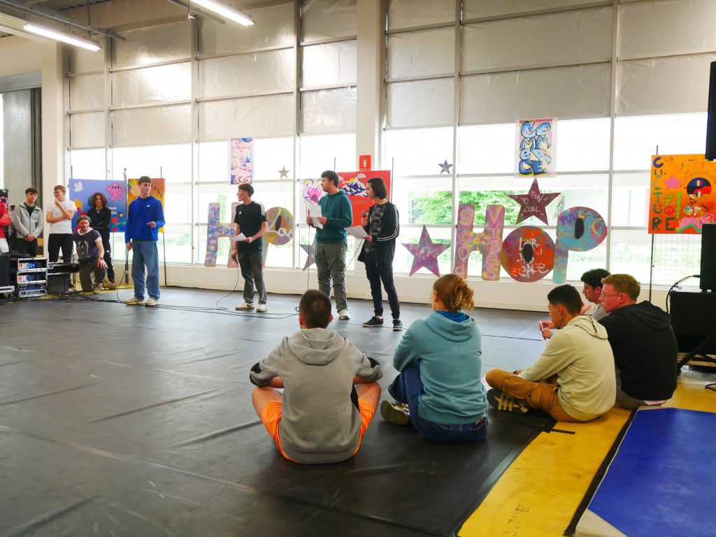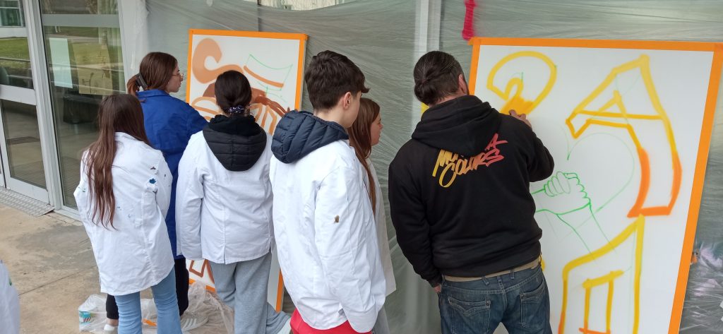 Cette année, avec ce projet, les élèves de 2BPMRC ont bénéficié d’ateliers Hip-hop, Slam et Graffiti.